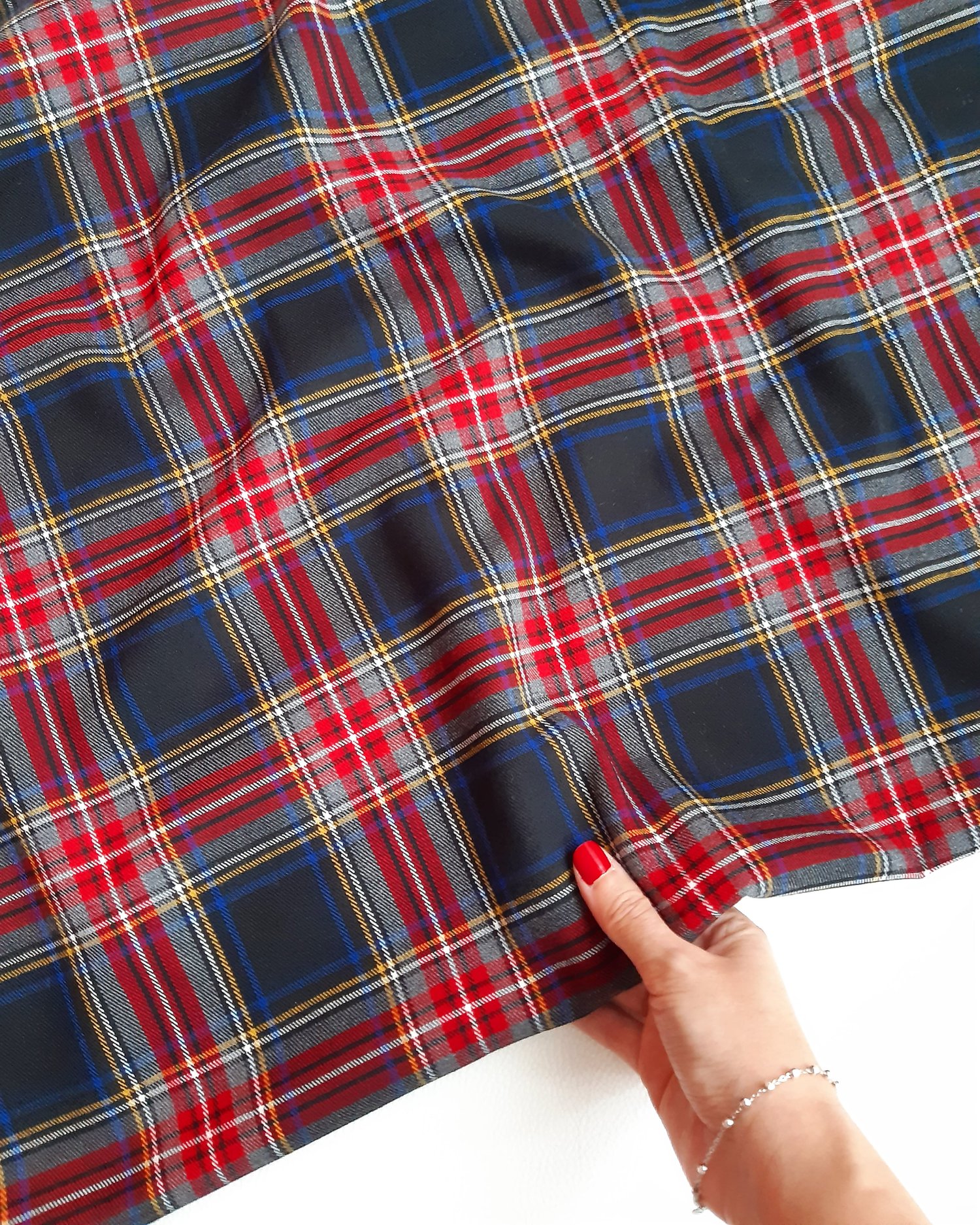 Gonna realizzata artigianalmente a mano e su misura da me, nel modello con elastico esterno a cintura, elastico interno, galetta, balza increspata, pieghe e tubino, in un bellissimo tessuto tartan, sobrio ed elegante, che vi accompagnerà durante tutta la stagione.