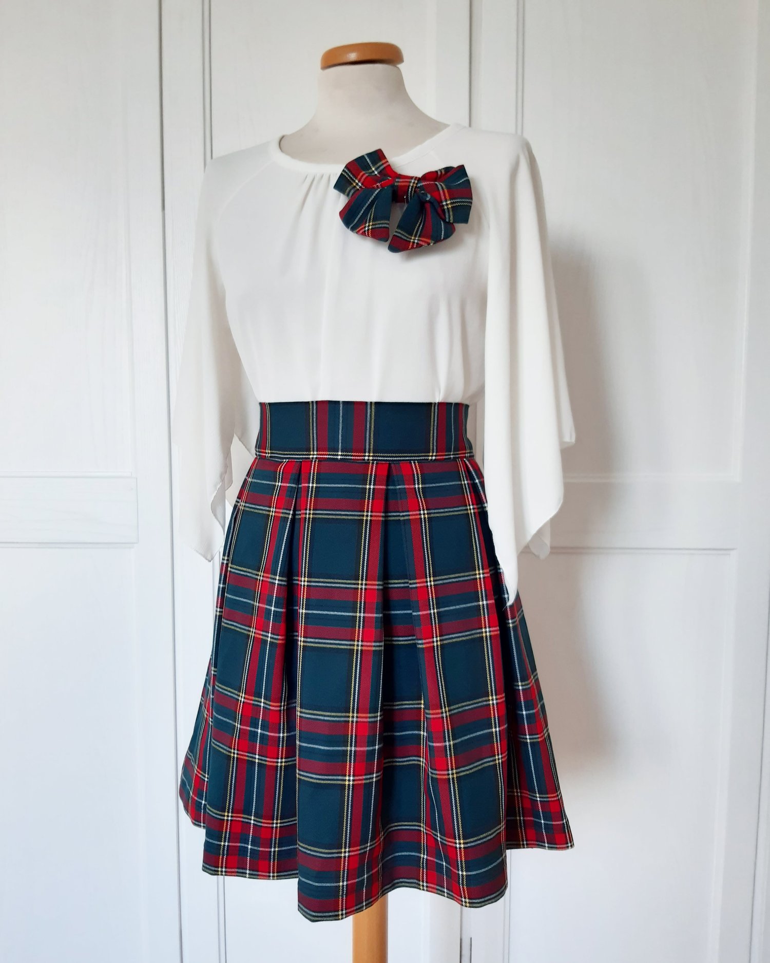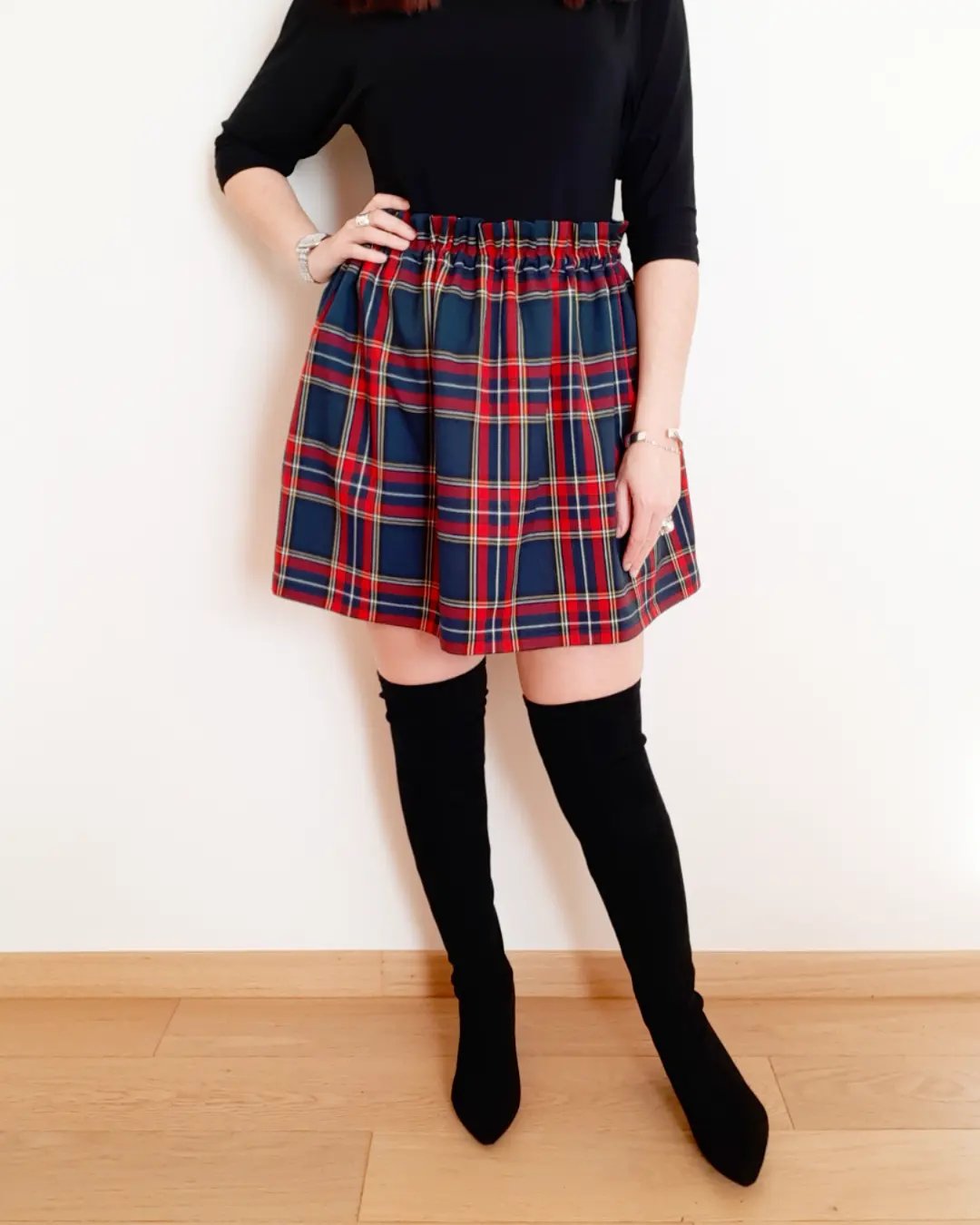 Gonna realizzata artigianalmente a mano e su misura da me, nel modello con elastico esterno a cintura, elastico interno, galetta, balza increspata, pieghe e tubino, in un bellissimo tessuto tartan iconico, dallo stile unico e inconfondibile!!